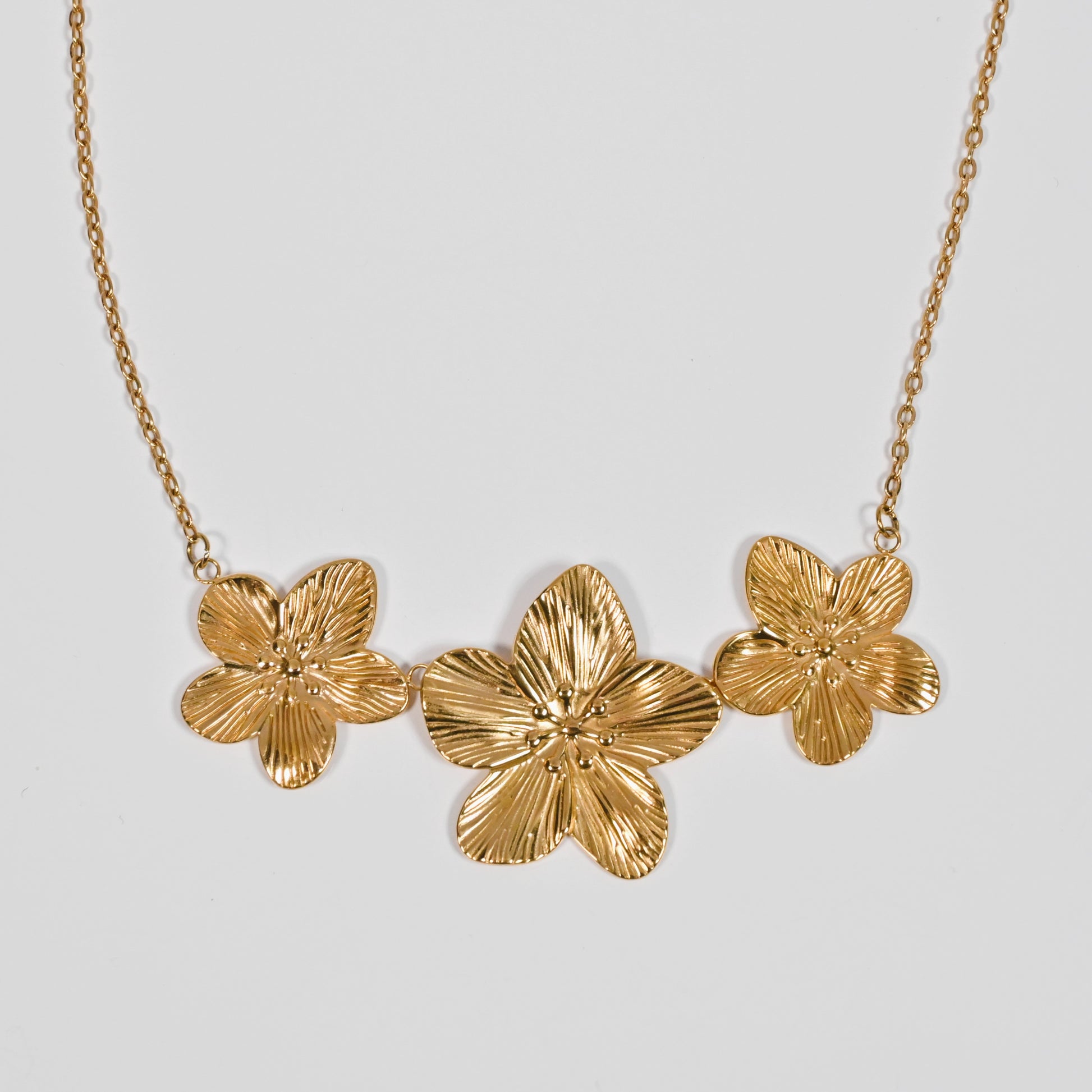Delicada y femenina, este collar con diseño de flor y el juego de pantallas aportan un toque de naturaleza y elegancia a cualquier look. Fabricada en Stainless Steel, su diseño detallado y sutil la convierte en el accesorio ideal para el día a día o para ocasiones especiales.