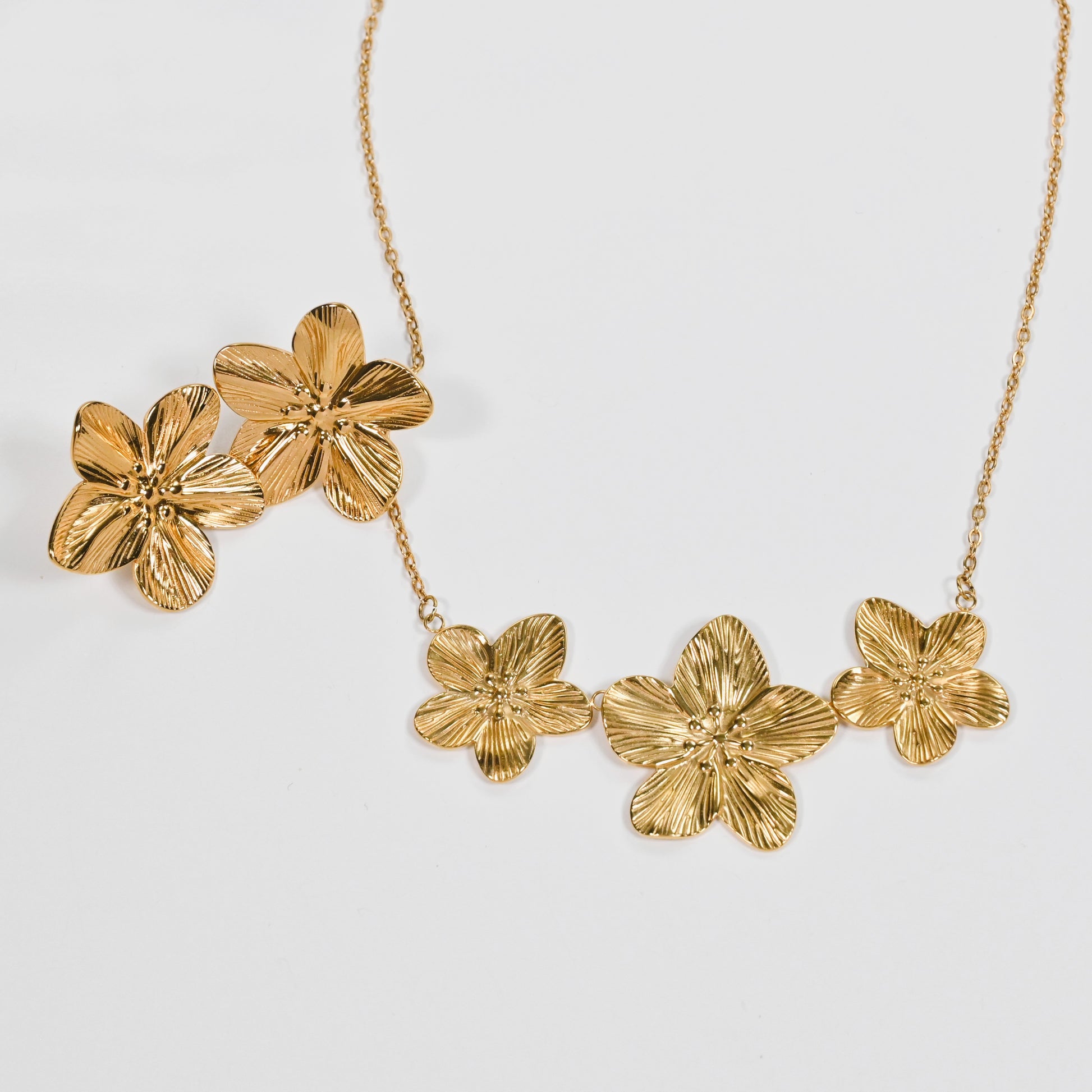 Delicate and feminine, this flower-design necklace and pair of earrings add a touch of nature and elegance to any outfit. Crafted in Stainless Steel, its detailed and subtle design makes it a perfect accessory for everyday wear or special occasions.