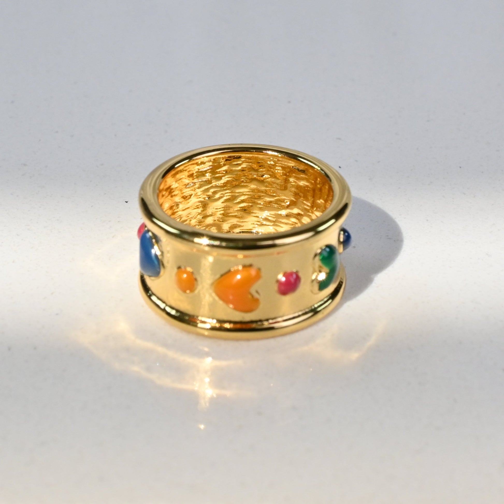 A bold and playful design that radiates personality. Crafted in 18K gold-plated Titanium Steel, these set of earrings and ring stand out with delicate primary-colored hearts, bringing a vibrant and youthful touch. Perfect for women who love to shine with unique, stylish accessories.