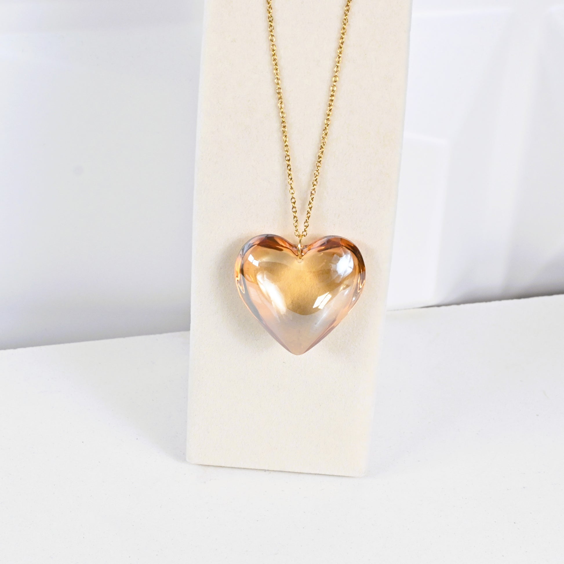 Cadena fina en stainless steel con un delicado pendant de cristal en forma de corazón. Disponible en cristal transparente o color smoke, perfecta para un look elegante y moderno, ideal para el uso diario o para combinar con otras piezas.