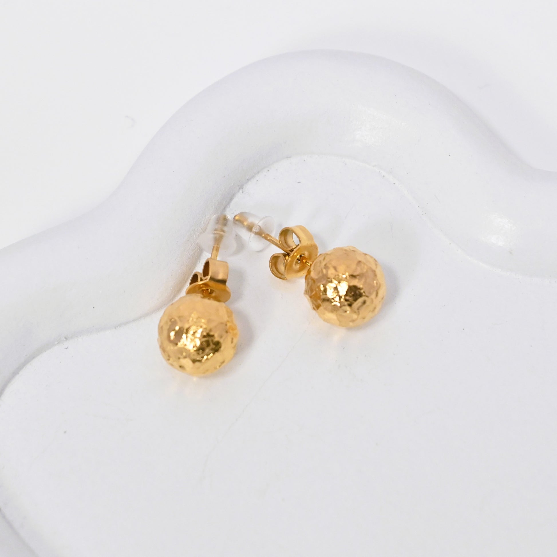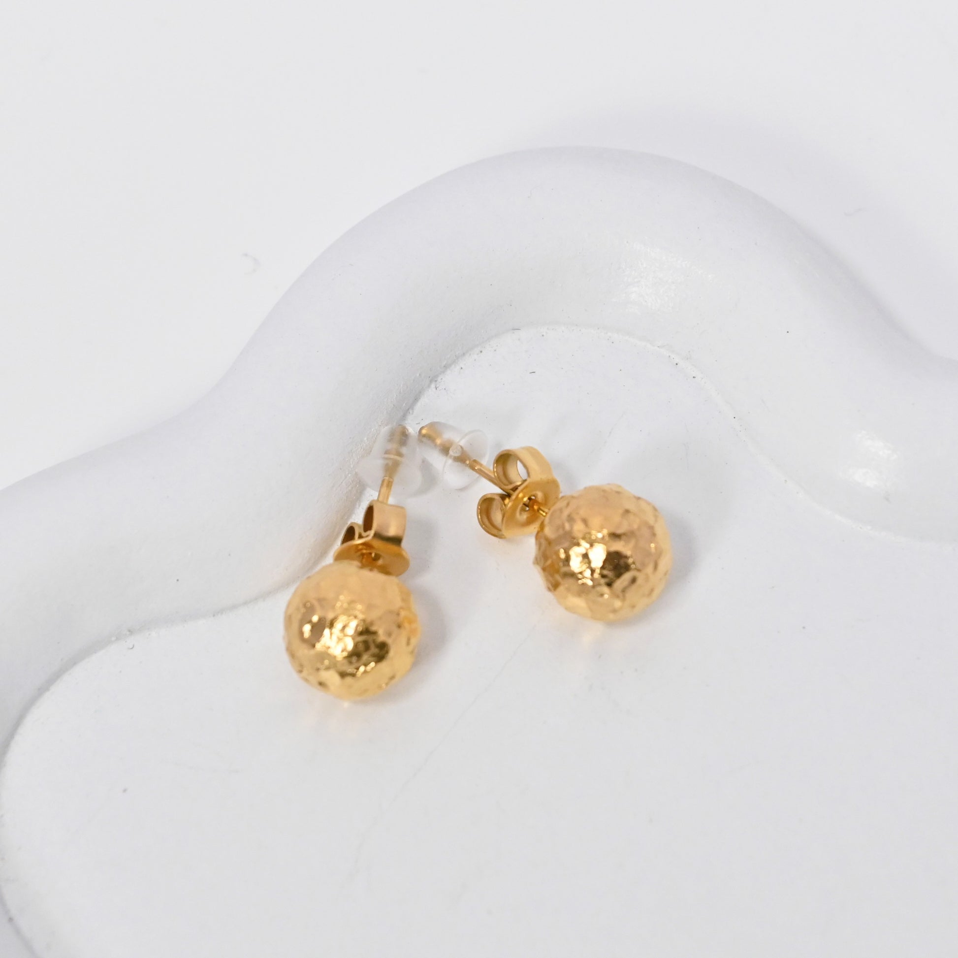 Timeless yet modern, these stud earrings feature a corrugated texture that adds a unique and elegant shine. Crafted in titanium steel with gold plating, they are durable, versatile, and perfect for a minimalist look with a touch of sophistication.