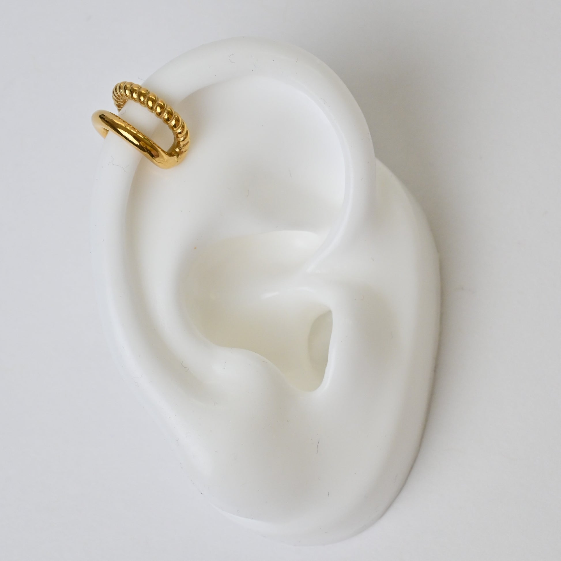 Un accesorio versátil y minimalista, este ear cuff en Titanium Steel es perfecto para llevar a diario. Su diseño sencillo y delicado se adapta a cualquier estilo, añadiendo un toque moderno sin esfuerzo y sin necesidad de perforación.