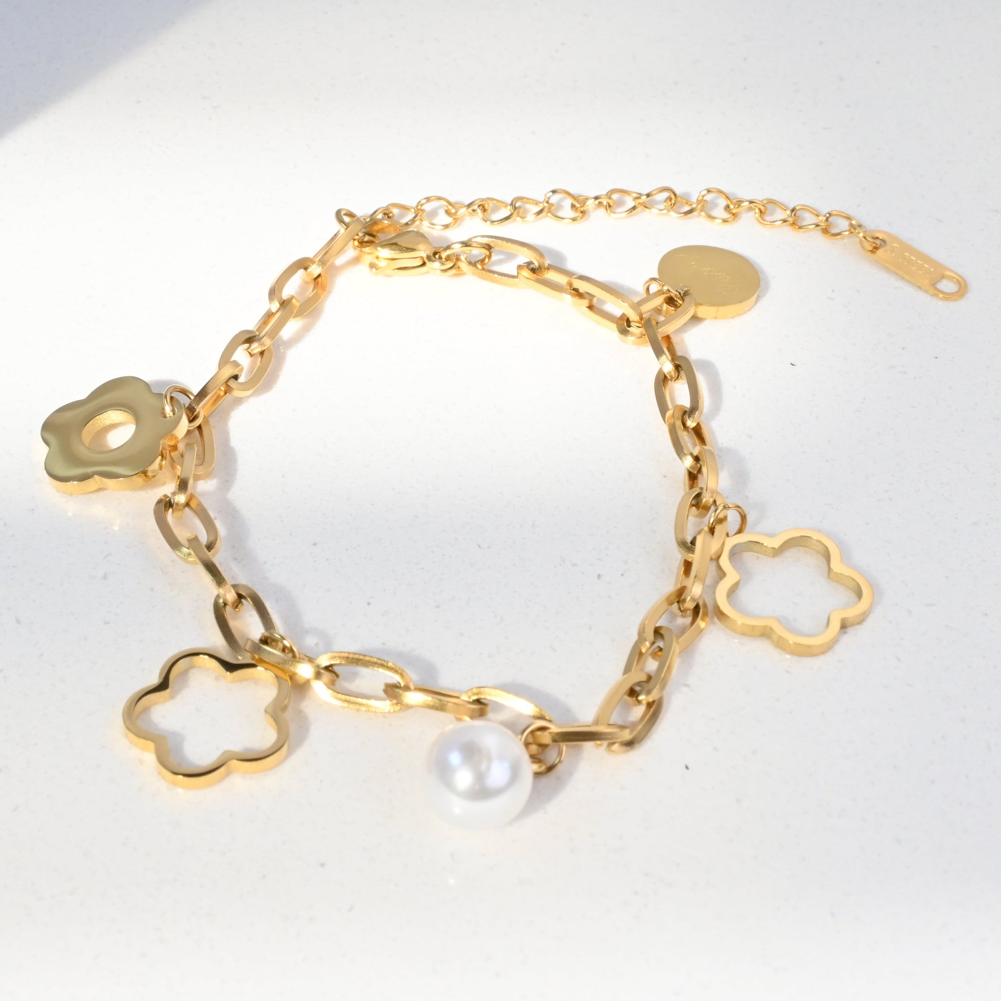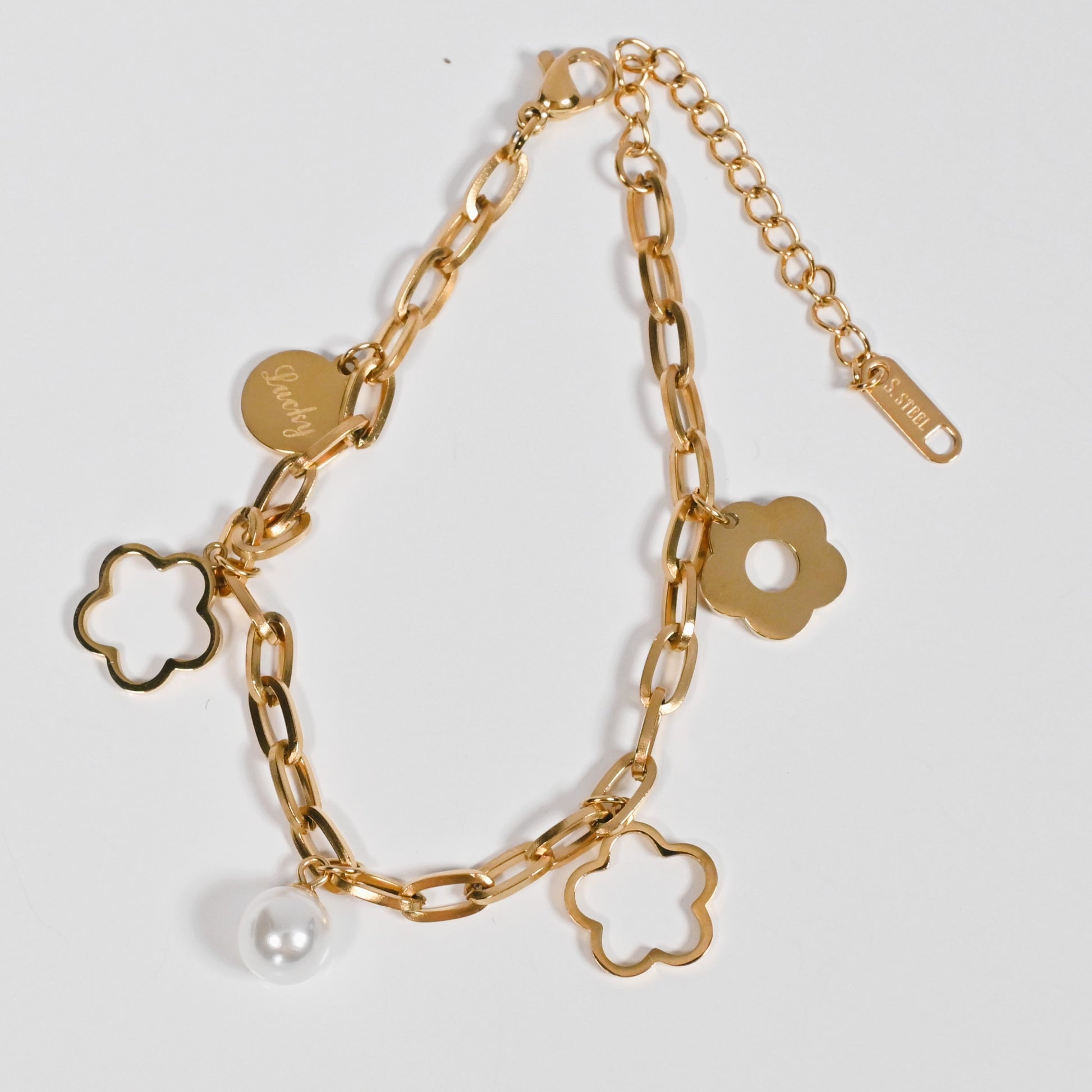 The I Need Flowers bracelet is a celebration of femininity and joy. Its design features a delicate variety of flowers in gold-plated stainless steel, creating a romantic and lively accessory. A versatile piece that adds a fresh to your style.