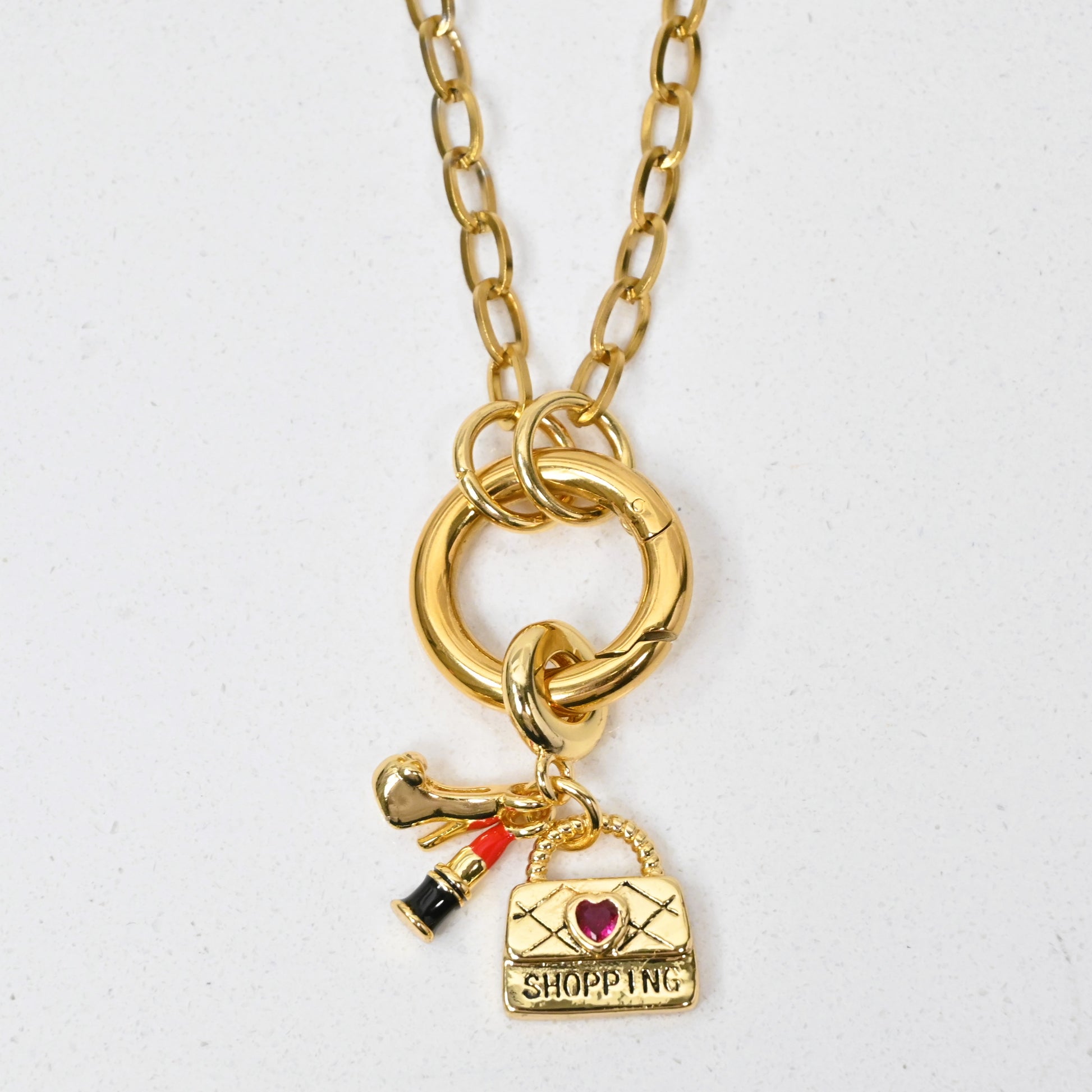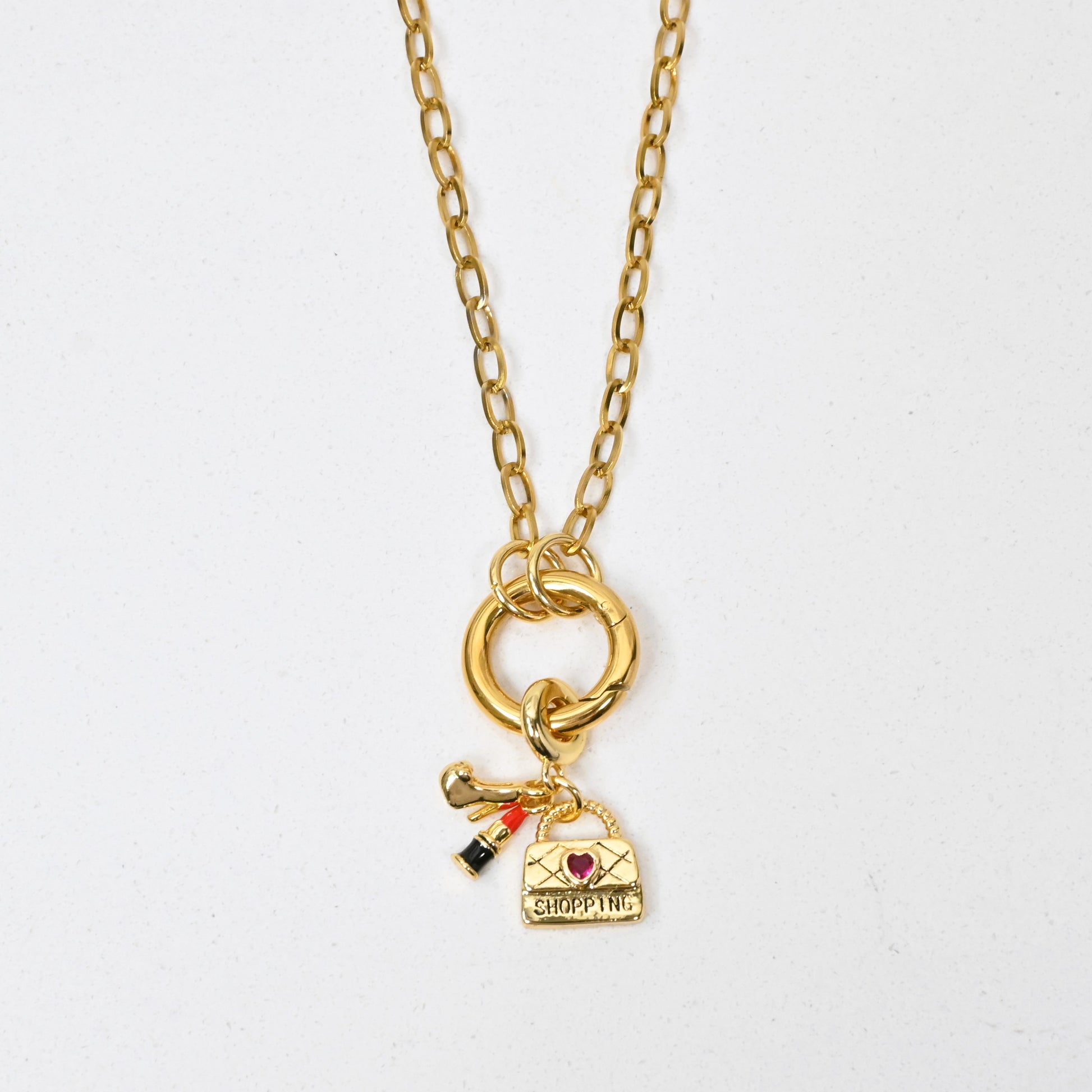 Cadena y Charm en Stainless Steel con cierre de argolla frontal.