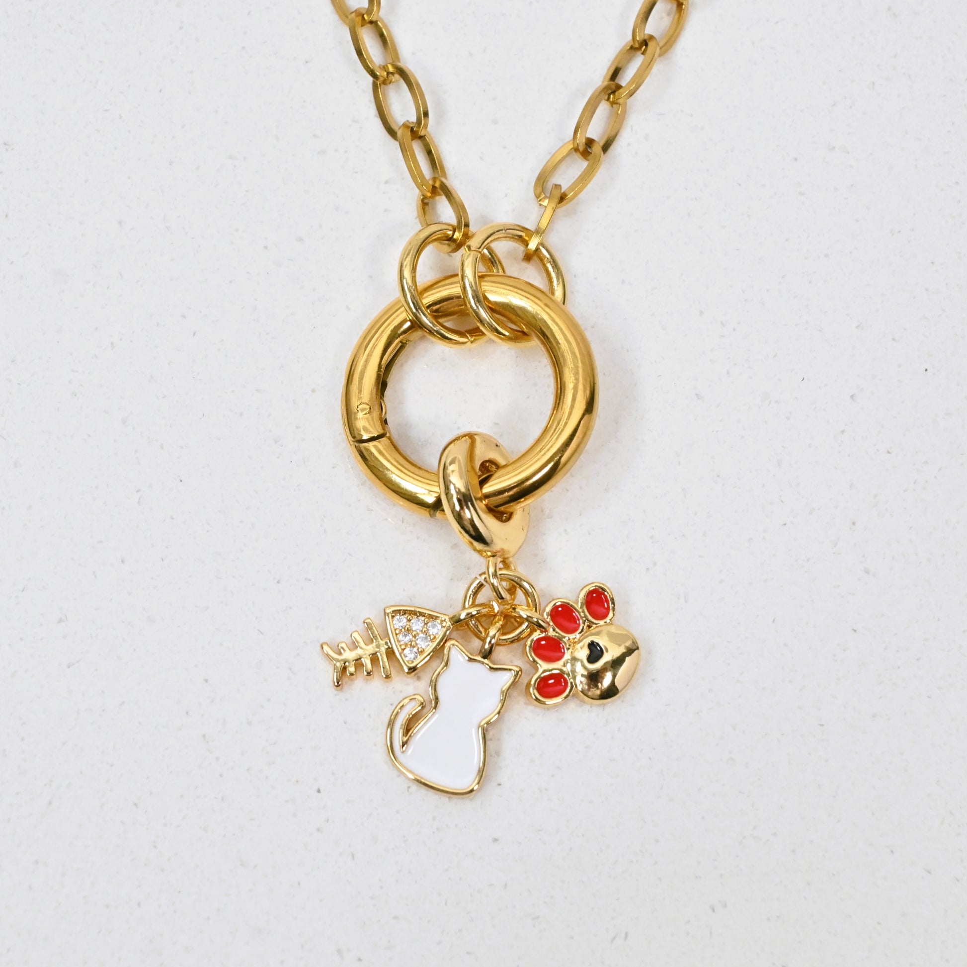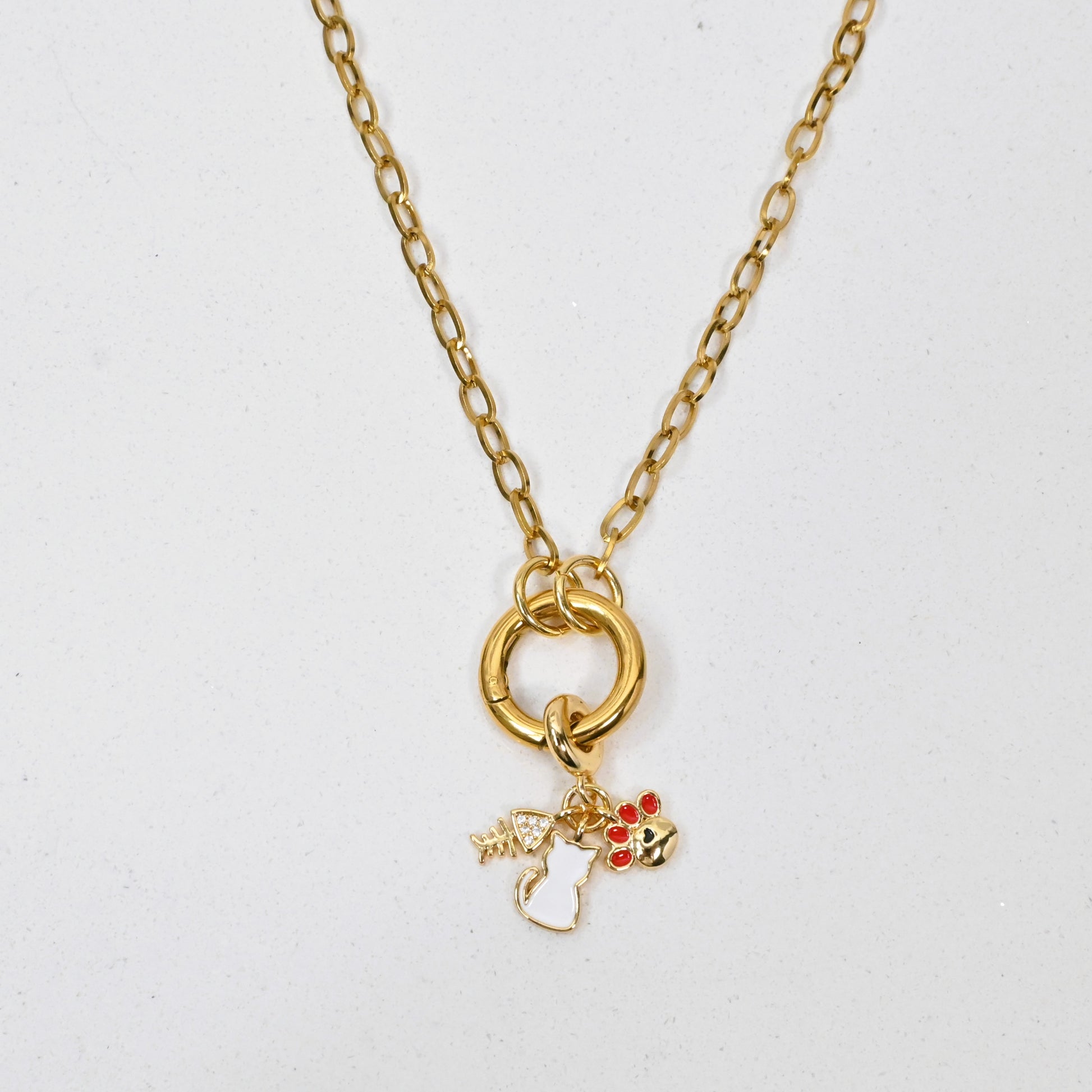 Cadena y Charm en Stainless Steel con cierre de argolla frontal.