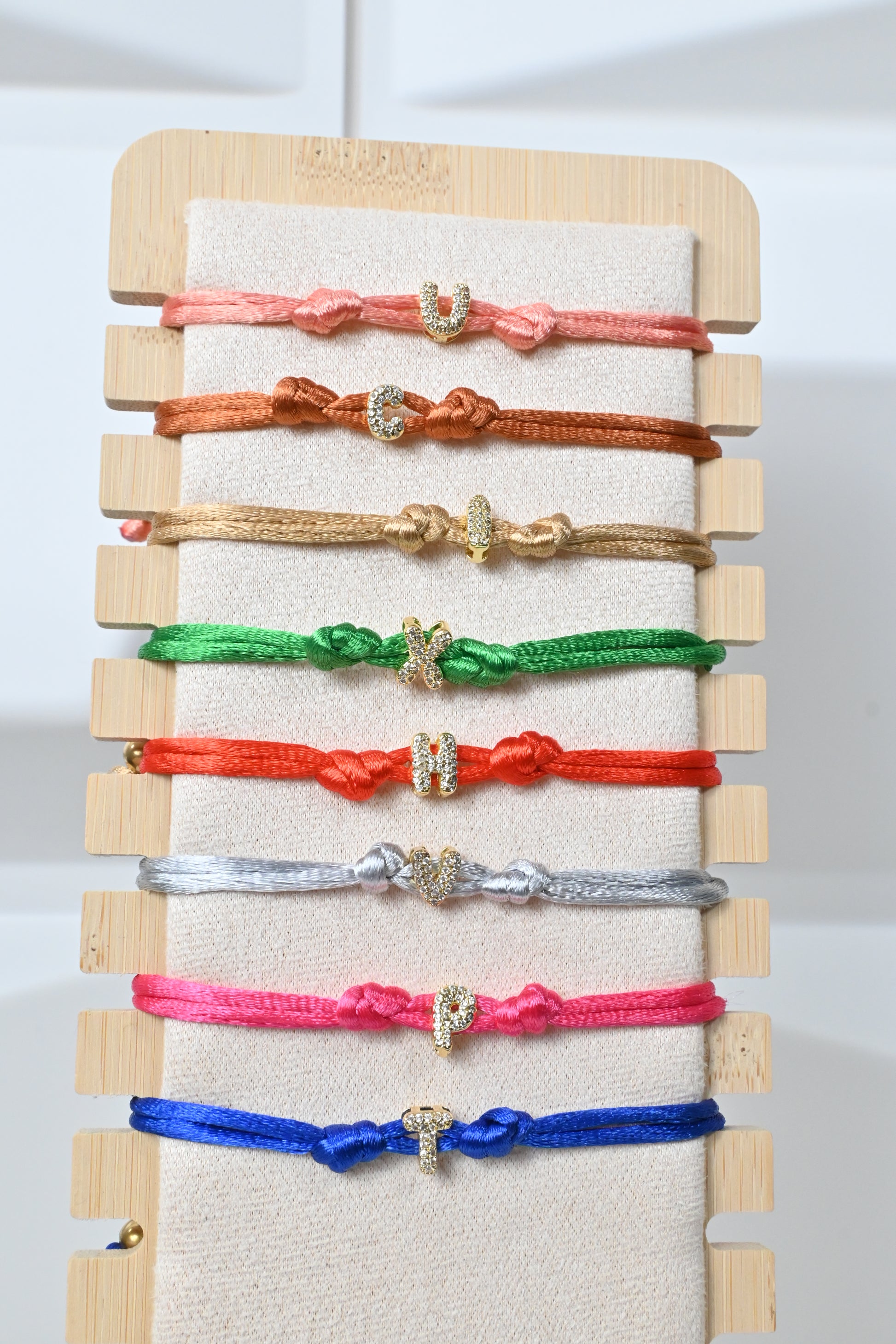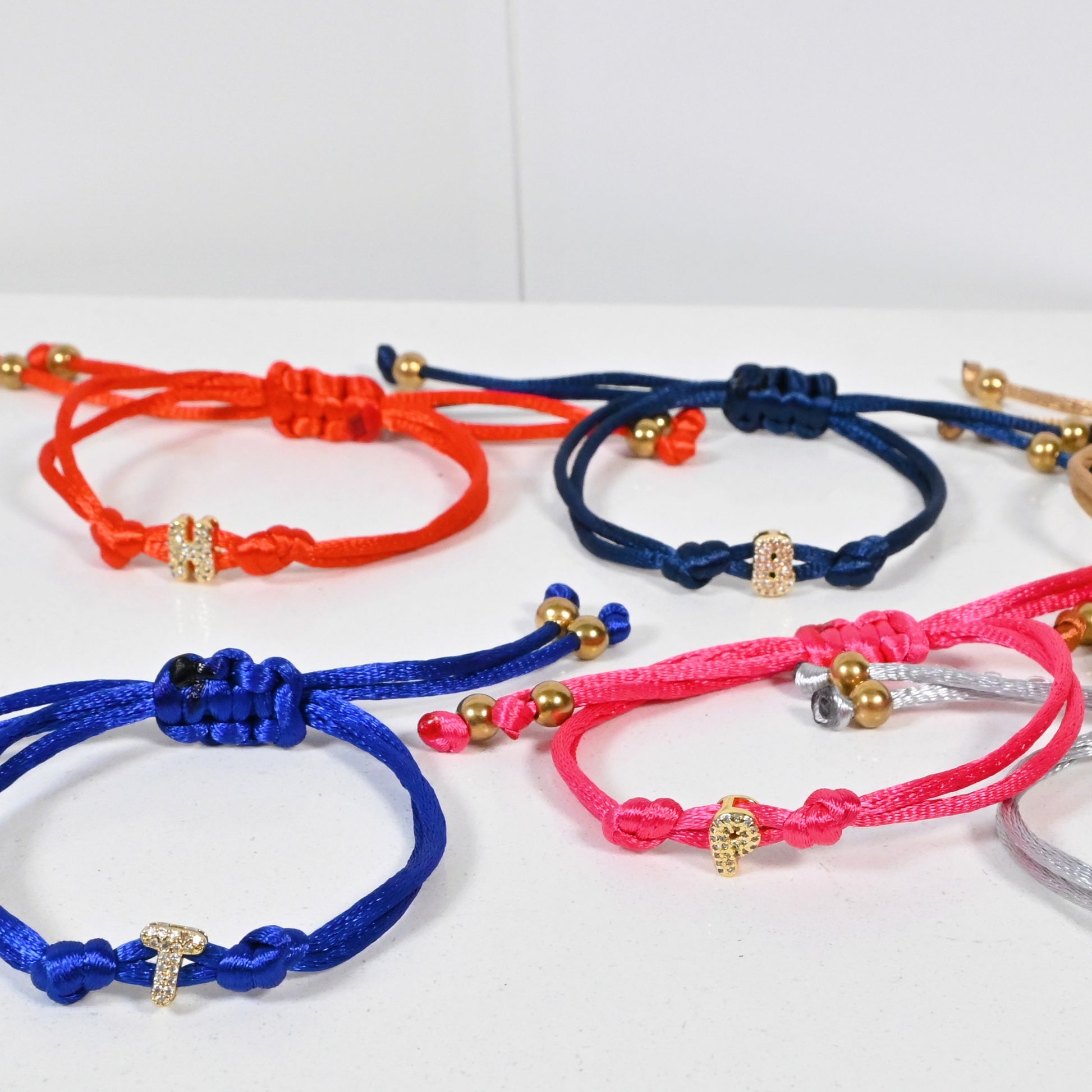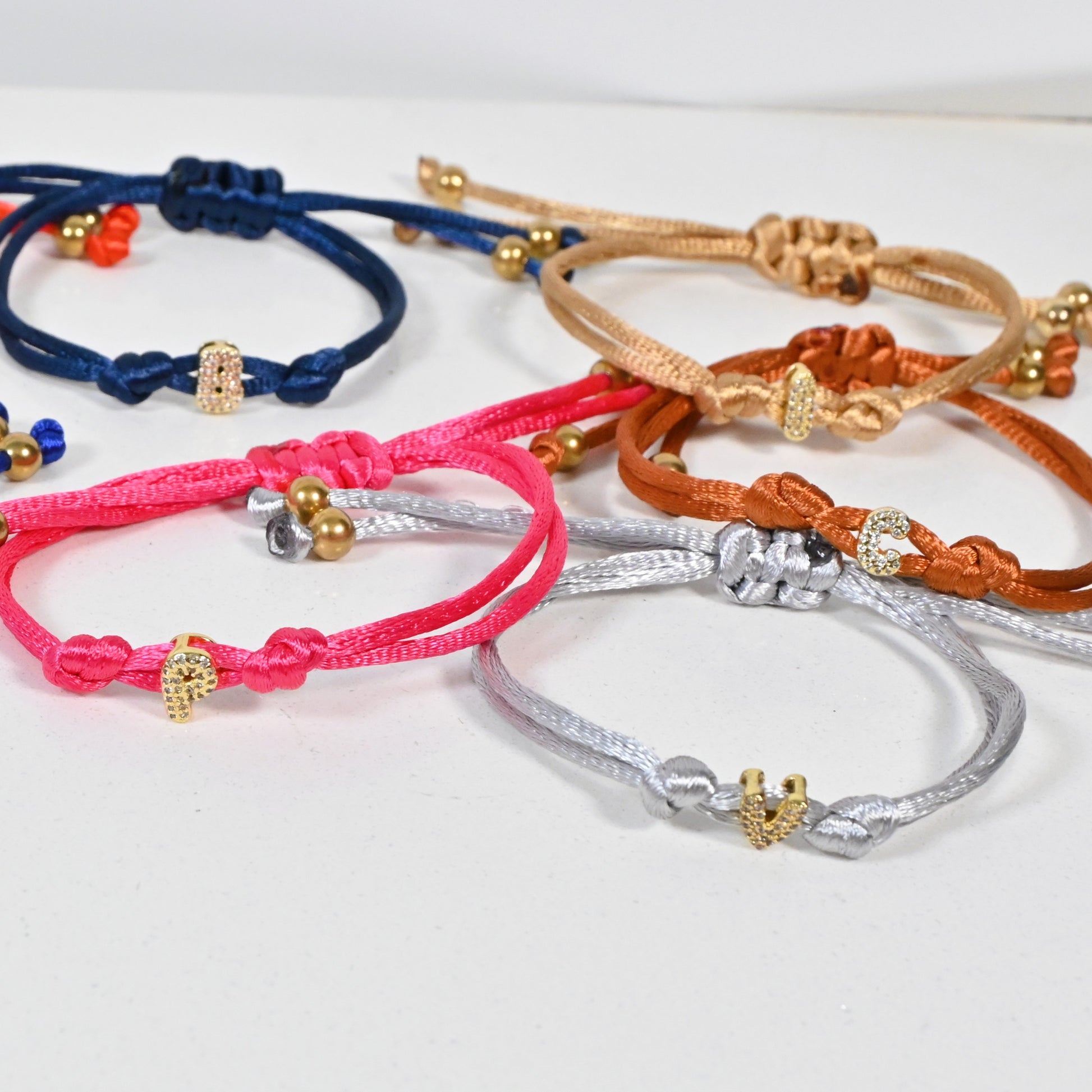 One Letter, One Story! Handmade bracelets crafted with vibrant satin thread and gold-plated initials, making each piece a unique and personal detail. These custom bracelets are made to order, with every detail carefully crafted with love and dedication.
